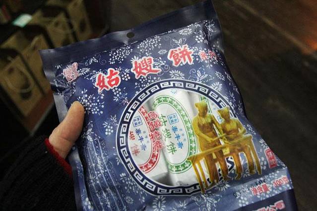 ▲【乌镇】的姑嫂饼是乌镇的传统名点。 据《乌青镇志》记载,距今已有100多年的历史。民间传说它是因姑嫂二人斗气而成,故名姑嫂饼的形状酷似棋子饼,比棋子饼略大。所有配料跟糖相仿,也是面粉、白糖、芝麻、猪油等,但其味比酥糖果可口,具有油而不腻、酥而不散、既香又糯、甜中带咸的特点。里面有甜咸两种味道。