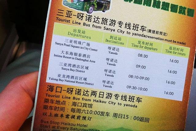 ▲【呀诺达】宣传资料上面有详细的介绍和如果乘坐景区的班车达到景区,在头天晚上8点半我拨打景区的电话号码,告诉他们我住在什么位置,在那里乘车比较方便。工作人员回答说:先于景区的班车联系后给我回电话。大概也就5分钟,景区的工作人员通知在我住的附近绿海田园站点就可以乘坐,8点30分会有班车经过。请我把报名人数,乘车地点与手机号码发送到他的手机里面,便于让班车的工作人员明早与我联系。真是太方便了,乘车地点就在小区对面30米处。完全不用着急早起,可以吃个早饭散步到站点。早上8点30分顺利在绿海田园站乘坐【呀诺达】景区标志的班车,工作人员点名确认信息。班车每个人往返30元,从市区达到景区大概40分左右。