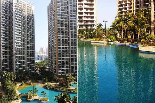 ▲【兰海花园】小区内的游泳池,看到就自然心动。中午的时候有很多孩子在这里玩耍。