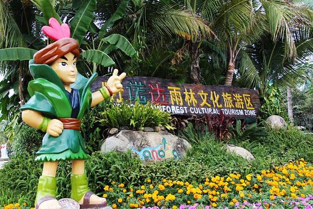 ▲【呀诺达】景区的欢迎花坛。本车的导游叫阿伟,他告诉我们可以跟他一起走,也可以分开走。根据个人的喜好,所有消费自愿,带队是免费。热带雨林会经常出现蛇这样可怕的动物,建议不要走栈道之外的道路。