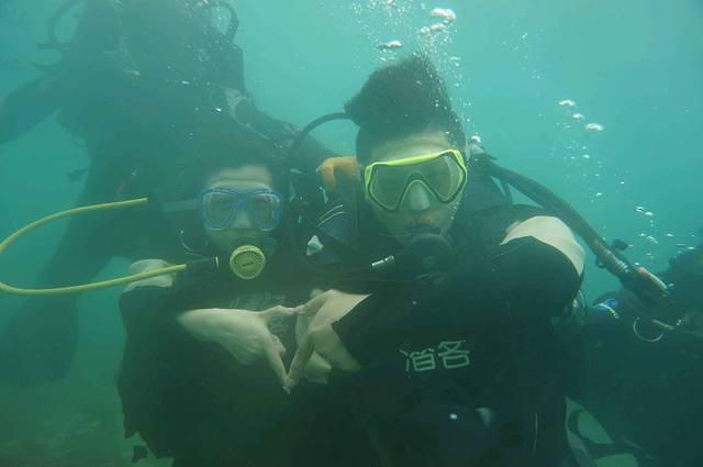 潜水啦,好兴奋啊。我们下潜到10米,耳朵已经开始疼了,再深应该是不行了,水下效果很好,觉得最好玩就是这个了。