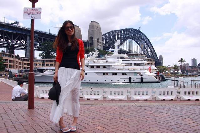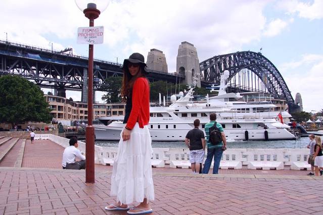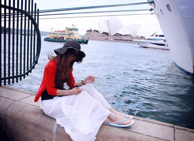 从悉尼大桥(Sydney Harbour Bridge)沿着Sydney Cove岸边一路走到悉尼歌剧院(Sydney Opera House),从各个角度拍了歌剧院和悉尼大桥。我知道我们拍的一定没有书上或者专业摄影师拍的美丽,但起码照片中得人物,或狂野跳跃,或低头含笑,或眺望所思,那些都是真实的,不是后期ps上去的,承载了我们当时的所感所想,它们不仅仅是静止的画面,应该是带有情绪的语言。