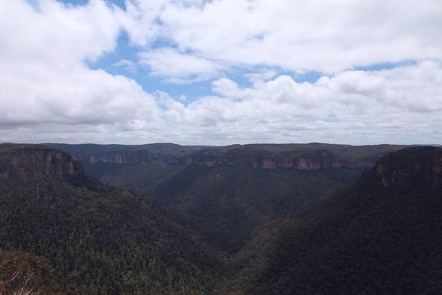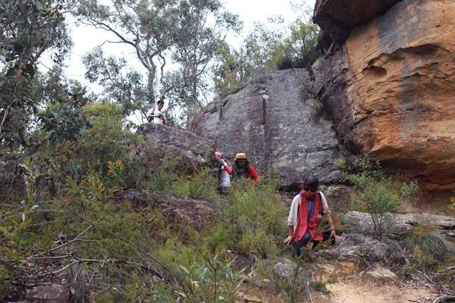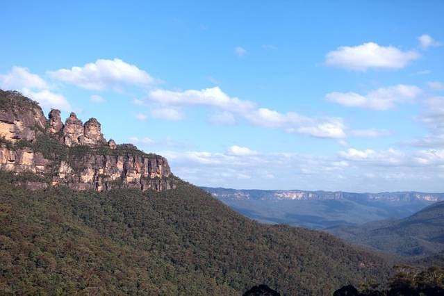 随着人流的增多,我们知道肯定到了著名的旅游景点——three sister mountain,下图中左侧的那三个小山峰就是所谓的三姑娘山,澳洲人的想象力的确不如国人来的丰富精准,勉强算是有点模样,凑合联想一下。比起之前独享的山谷风光,在这里无数人的分享来的有些无趣无味,看到大家都在到此一游的拍照,我们反而没了之前的创作欲望,草草拍了几张风景照走人。