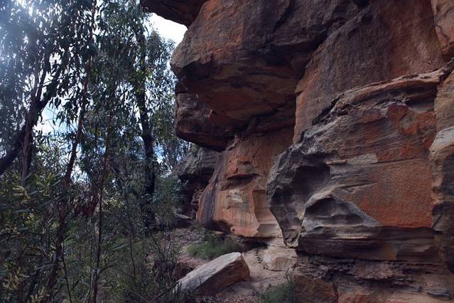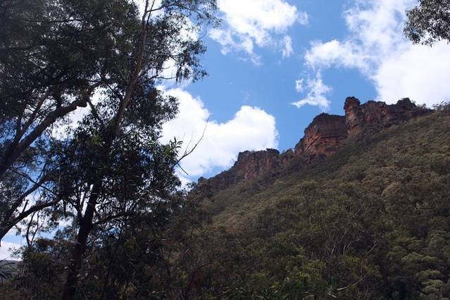 澳大利亚的广阔不仅仅是视觉上的,身体力行的丈量一定会反衬出个体的渺小,如果说前几天的澳洲之行我们都还脚踏实地的站在地平线上偶尔的跳跃着,那么今天悉尼的蓝山之行让我们痛彻心扉的体验了一次她的伟岸。其实之前我们是对蓝山并不是太有期待,总觉得一路看过太多超现实的自然风光,没有必要花一天的时间去一个游人昭著的国家公园,但最终还是超越不了“到此一游”的传统思想,GPS上找到了Blue mountains national park,出发了,快到目的地时,按照导航指定路线让我们拐进了一条很窄并且坑洼不平的土路,越往里开,我们心里越犯嘀咕,著名的国家公园绝不是这样鸟无人烟,不善修善,但强烈的好奇心让我们都不愿意随便放弃,相互打气的把车开到了路的尽头,这里有路牌,真的就是一个叫做national park的地方,赞叹山寨导航强大无比的同时,也感慨国际友人旅行的爱好取向,他们崇尚自然,自由,自在,无束。在这里我们终于见到了人影,两个外国朋友正在做吃的,一看他们就是有备而来的,一辆面包车里装满的各种食物的原材料和制作工具,估计是刚徒步回来在补充能量。