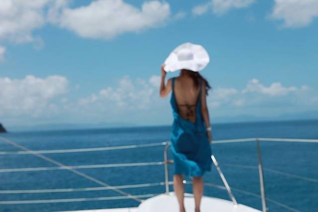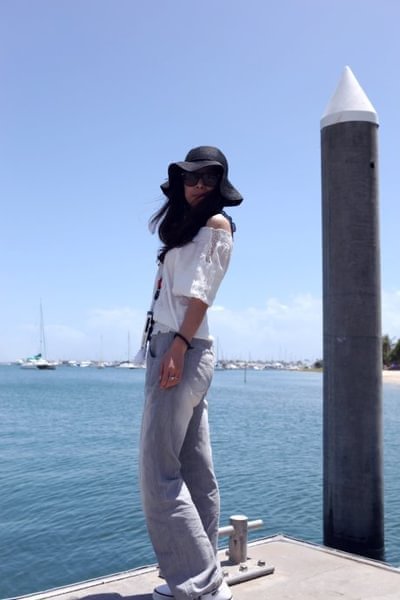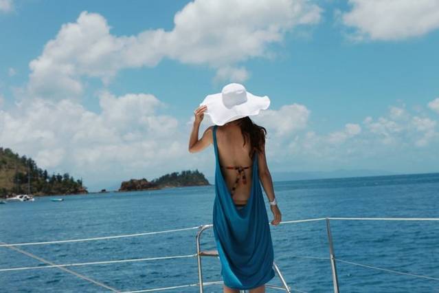 这个背影有没有很熟悉?这套衣服,这个造型,曾经在网上风靡一时,看过很多次都没有勇气买,这次出海有游艇当道具,特意买来凹造型,这套衣服的亮点就在背后,所以拍了很多背影照。