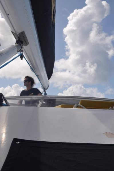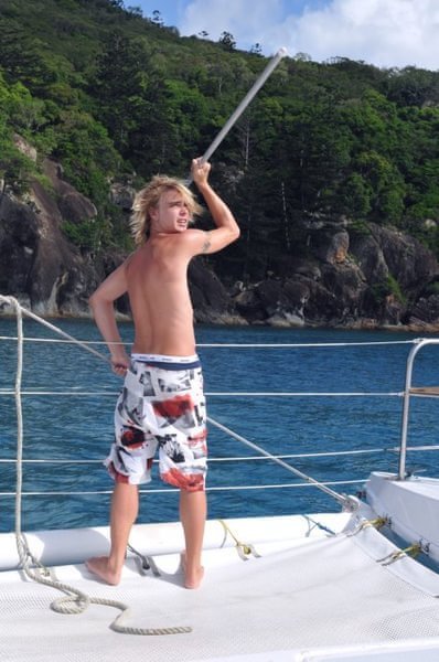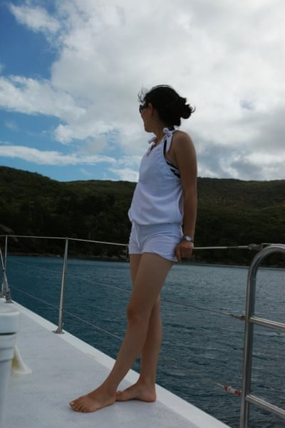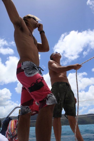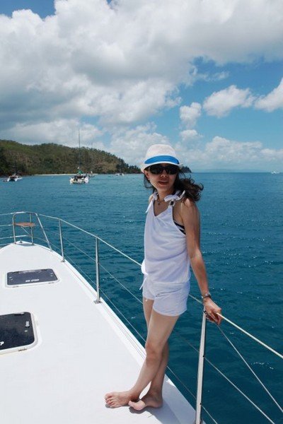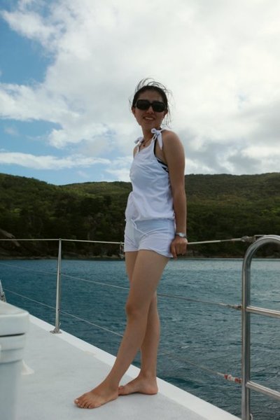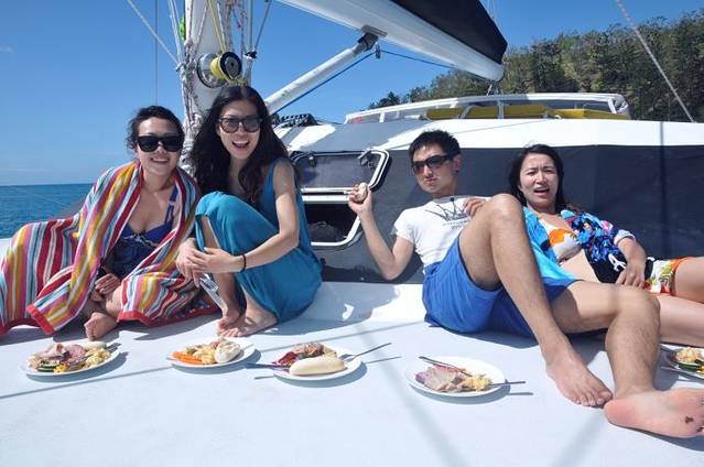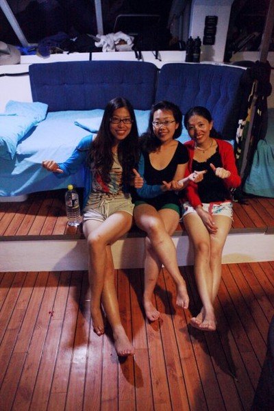 这三个男人真心的帅啊,每个人都有各自的风格,Richie很成熟幽默,一个来自于英国的男人,在澳洲呆了6、7年了,有个丹麦的女朋友,还跟我聊天说他很想来中国看看,因为他觉得中国发展很快,有很多的机会,但如果他看到北京的天气不知道还愿不愿意来了。Dyllan绝对是帅了,说话没有Richie的跌宕起伏,比较平静温和,不笑的时候很酷,笑起来又很迷人。Ben应该是最小的,就像一个很阳光的大男孩儿,总是微笑示人,说话很简单干脆,一路给我们做了不同花样的美味食品。看到他们我们这些花痴女人就各种满足,忍不住多瞄几眼,也为我们的出海旅行增添点幸福的感觉呵呵。