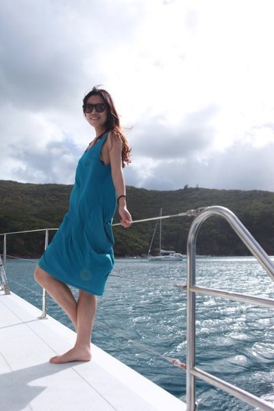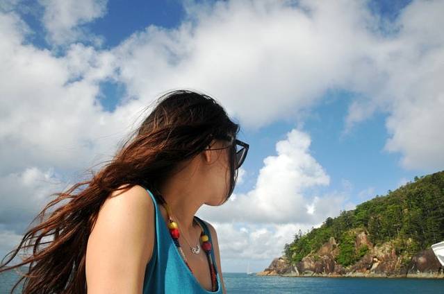 面对这样的天,这样的海,我不会知道你会有什么感觉,我只知道我身上的每个细胞都在跳动,恨不得先我一步去看海,它们美的那样彻底,那么不真实,我甚至开始怀疑自己真的身临其境在此处存在过,想想那些常年面对它们的人们,他们上辈子何德何能,这辈子能够与此相伴,好吧,我知足的庆幸自己曾经到过此地,曾经如此毫不吝啬的吞吐过这里的空气,我知道,回到北京的我,身体里早已被污浊的空气占满,但起码我的记忆依然存在,留存着对那片海的美好回忆。港湾的海出奇的平静,跟之后真正入海后的大浪有着鲜明的对比,如果说此处的海是含蓄的,有如一个温婉平和的姑娘,静静的待在那,等待你去解读欣赏;那么过后的海浪就有如浩瀚强壮的男人,用他强有力的双臂拍打着我们的游艇,我们一群怕晕船的女人们结伴坐在了船头,随着海浪此起彼伏的上下激荡,时而激起的浪花灌入夹板,把我们全身打湿,我们尖叫着,犹如在坐海盗船一般的刺激。