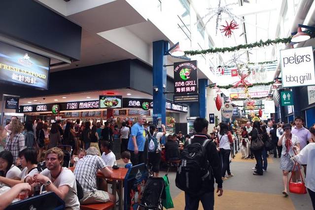 这里有各国的美食,各式西餐和各种亚洲餐馆,据说在国外中国餐馆“小南国”很有名,但我们嫌中餐麻烦,还是选择了韩式料理,一人点了一个拌饭或者汤,我的英语水平基本只能知道饭菜里有什么原料,其他都不知甚解,最后点了一个牛肉拌饭,结果上来的是生牛肉拌饭,其实澳洲的生牛肉还是很鲜嫩的。