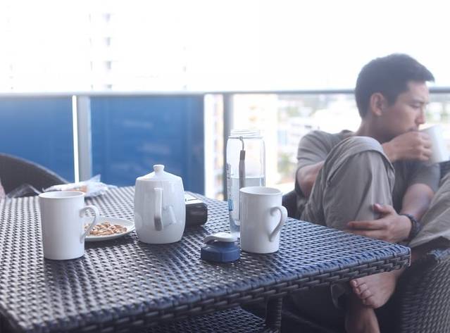 大家洗漱一番,坐在阳台上吹着海风,享用着下午茶,计划休息到下午趁太阳下山之前,到事先计划好的Springbrook National Park(春溪国家公园)的一处(瞭望台)best of all look out看夕阳,以及晚上到一个岩洞里看澳洲有名的glow warms(一种会发光的虫子)和会发光的蘑菇,它们不是萤火虫,是澳大利亚的黄金海岸和纽西兰才能看到的一种蓝光虫,目前已经被列为世界自然遗产,并且被澳洲政府一级保护昆虫,它们是附着在潮湿的岩壁上生存的。