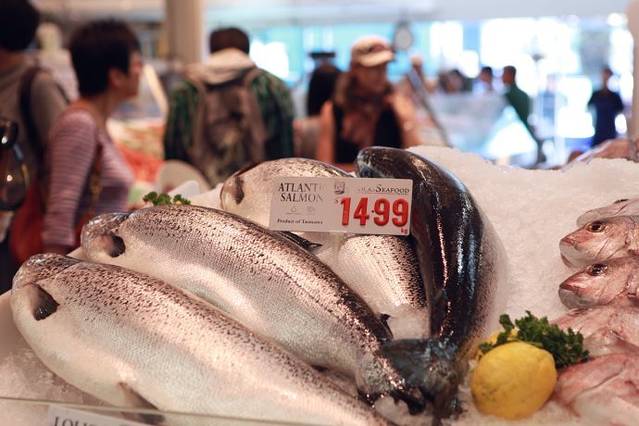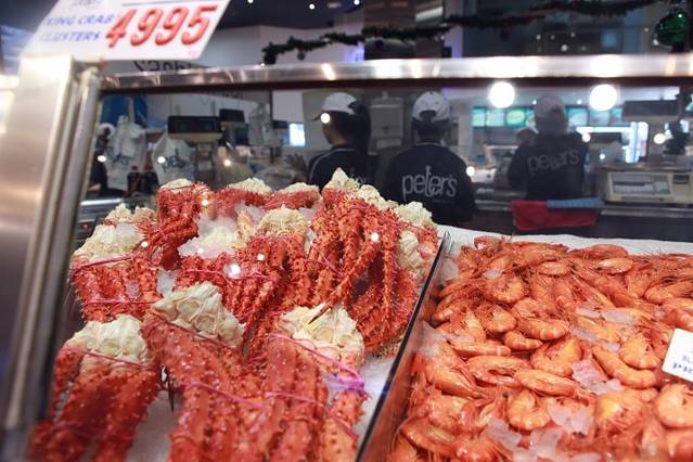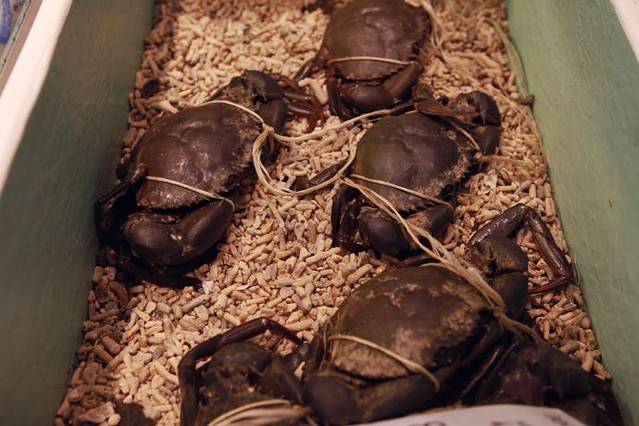 市场里面到处可以看到中国字,海鲜是随买随吃,有些是清蒸过的直接可以吃,有些生的可以拿到旁边的饭馆加工,总之很原始也很方便,在这里我看到了很多毕生从未以此谋面的大龙虾、紫蟹、三文鱼、黑蟹等等等等,它们就像菜市场的菜被摆在货架上,被络绎不绝的人们随便吆喝着,美味着。
