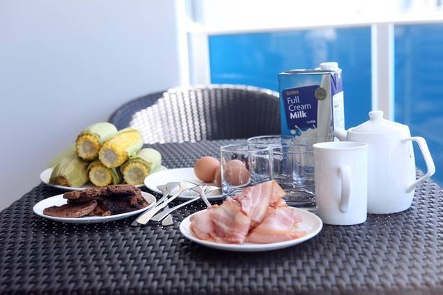 第三天旅行从美好的早餐开始,看起来还蛮丰富的吧,虽然曲奇有些烤焦了,但大家都还是觉得非常美味,值得一提的是澳洲的玉米,非常水嫩非常甜。早上狠狠的睡了一个黄金海岸的懒觉,早晨睡到自然醒,吃过早点,退房,又到租车的Avis买车的保险(128AUD),最后11点钟才从G.C.一路迎着阳光出发。