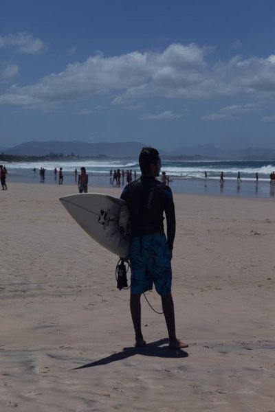 刚看过静如处子的平静港湾,几分钟后又领略动若脱兔的海浪,黄金海岸之所以著名当然还有令人一眼便疯狂的海浪,这里是surfers paradise—冲浪者天堂,我们没有装备,只能海边体验一下一浪高过一浪的刺激,随意准备湿身。
