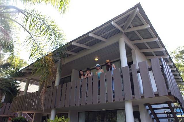 花5AUD/人坐大巴把每位乘客送到各自的酒店,由于旅游旺季房间紧张,Nic没有订到可以观海的山顶公寓,只订到了一个叫Base airlie beach resort的一个5人间,本来早上赶飞机的惊心动魄早已让我们立下誓言,如果能赶上飞机就算露宿街头也愿意,所以对于这个5人间的各种简陋都无所畏惧了。