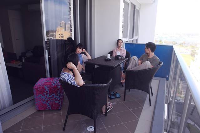 饭后在街上闲逛了一下,开车回酒店check in,G.C.这个城市不大,开过几圈基本就可以不用GPS导航了,这就是我们住的酒店式公寓,我们在悉尼住的也是这个连锁酒店,看介绍澳洲很多城市都有这个酒店,全都是两居或三居的家庭房,很适合一家人或者人多一起住,分摊算下来比一般酒店要便宜,并且我们是5个人,住的都是两居室,其中有一个住客厅,更加节省了开支,关键是这种酒店不仅干净,而且带有厨房,房间里里各种设施一应俱全,不仅有各种吃饭和做饭的餐具,还有微波炉、电烤箱,甚至还有洗碗机,有专门的洗衣间,洗衣机和烘干机全都配备,所以我们可以自己做饭吃,晚上自己洗洗衣服,让我们真正感觉到自己就是生活在澳洲。