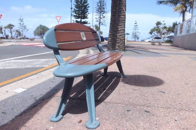 路边的椅子,做成了冲浪板的形状,很可爱。