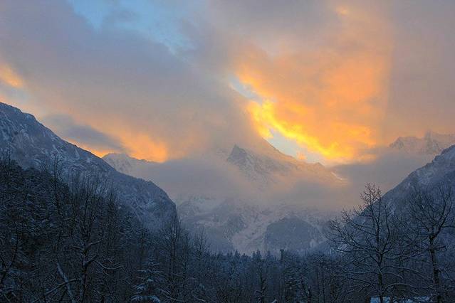 三号营地(海拔2940米):有两间酒店,金山饭店和银山饭店;我们住在金山,看日出的好地方,其实看日落也不错,偶就拍到了日落火烧云。