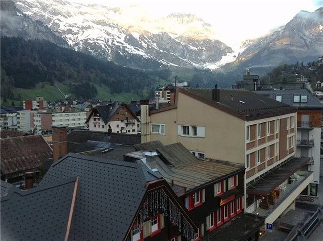 前一天晚上,我们住在英格堡小镇,一家距离铁力士雪山很近的小酒店。窗外灯光阑珊,颇有意境。