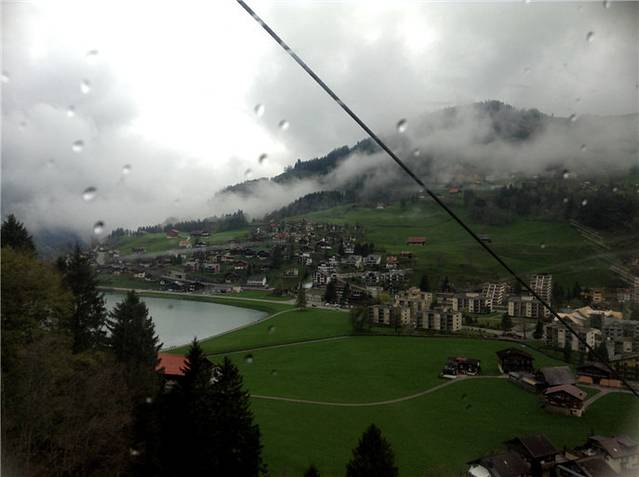我们坐着缆车上雪山,开始一段新鲜刺激的空中旅行,遨游在雄伟的阿尔卑斯山脉上空。