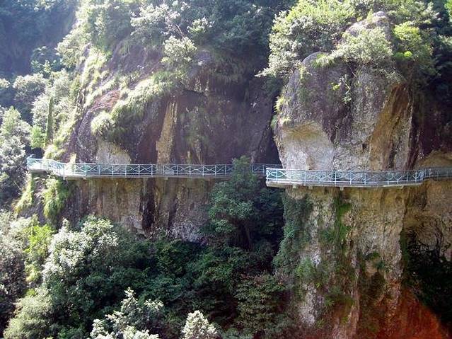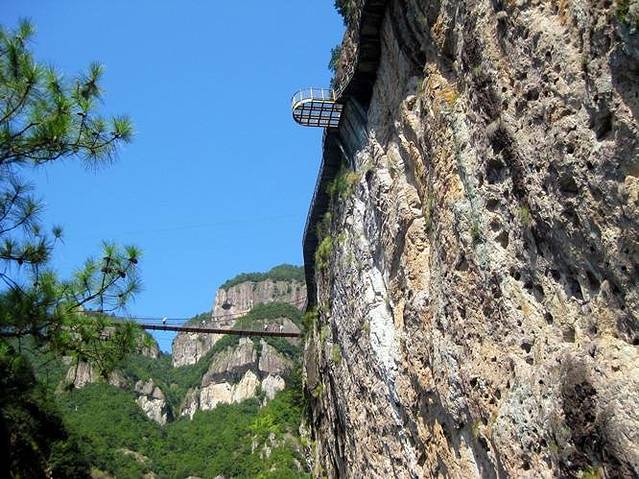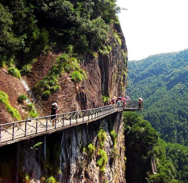 我们行走在悬空栈道,一边是90度垂直的峭壁,另一边是万丈悬崖。