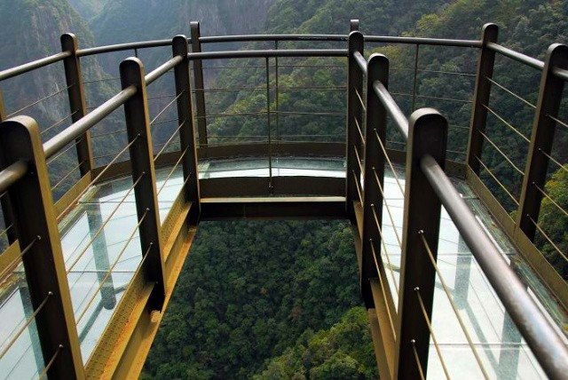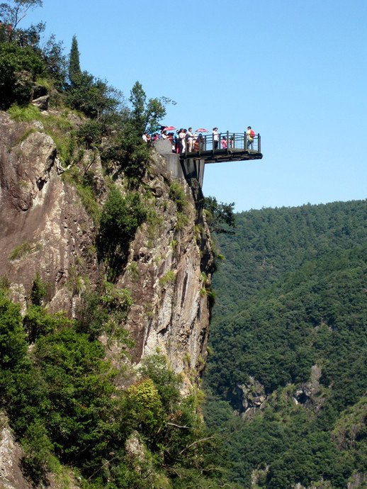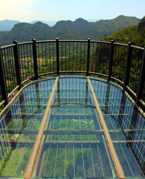 “中国第一悬空玻璃观景台”,位于孔雀峰顶。是目前我国悬空高度最高、宽度最大的悬空观景台。