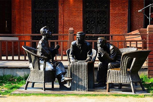 我们走在多伦路上,像是到了一座海派建筑的露天博物馆,这里保留着景云里、鸿德堂、孔(祥熙)公馆、白(崇禧)公馆等建筑。再看道路两旁星罗棋布的展览馆、博物馆、古玩店、吧廊餐厅等,还有多位名人雕塑,有的看书写作、有的在交谈。
