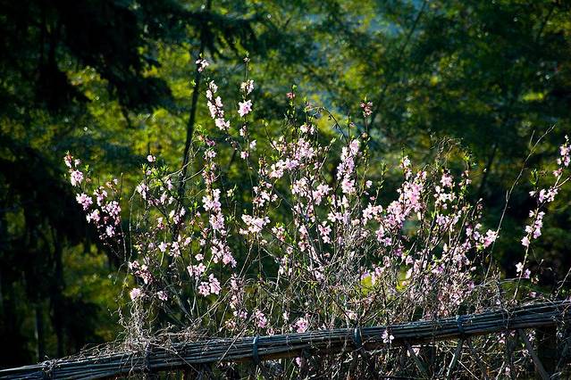进入入口,首先看到的是一棵小小的桃树,淡粉色的桃花开得正盛。