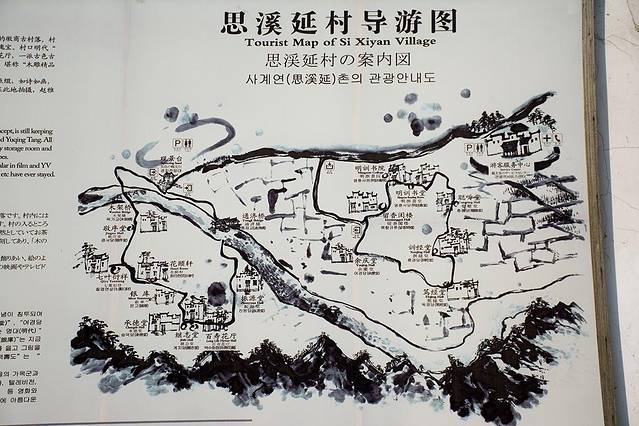 这是思溪延村的导游图了,很有特色的水墨画风格,和这里的青瓦白墙十分搭调。