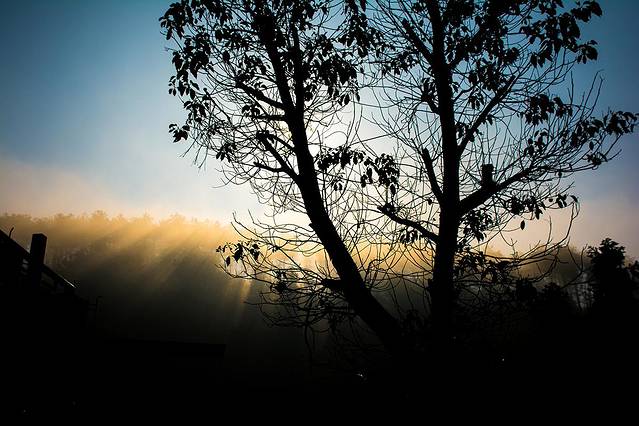 等待购票的间隙,无意中发现今天的雾气十分浓郁,已经翻过了山顶开始向山脚宣泄,而阳光也因为雾气的流动而产生了折射,冷暖色调的过度十分自然。
