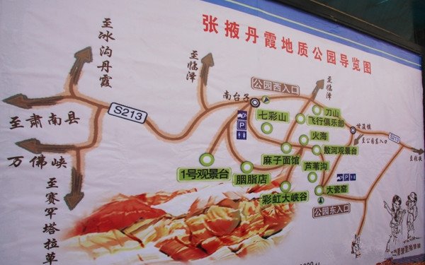 1 连霍高速------张掖西收费站------出收费站后右转直行------张(掖)肃(南)公路------丹霞地质公园