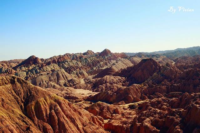 3 张掖丹霞地貌层级错落交替、岩壁陡峭、气势磅礴、形态丰富、色彩班斓而称奇,有七彩峡、七彩塔、七彩屏、七彩练、七彩湖、七彩大扇贝、火海、刀山等奇妙景观