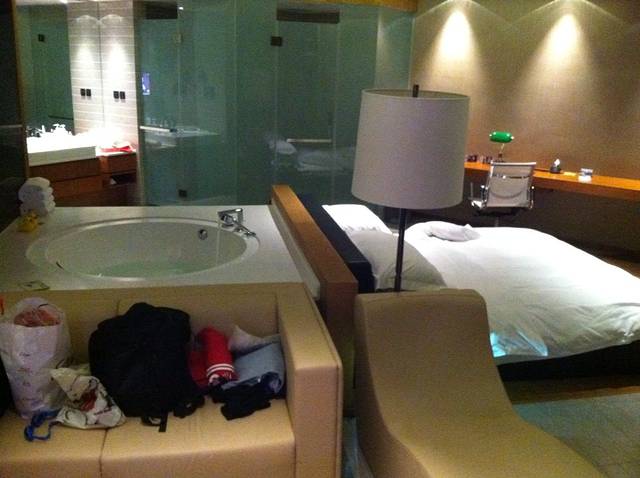 怀着郁闷的心情开往西坡,祈祷明天。这晚我们选择了万达套房假日酒店,特别喜欢万达度假区的结构,这里离县城很远,距离西坡大约30公里,离西坡最近的酒店是蓝景戴斯酒店,但是万达里的酒店大部分都是新开业的,环境很棒。在万达度假区里很人性化,应有尽有。温泉,餐厅,电影院,KTV,大玩家,屈臣氏,你需要的大部分都能满足