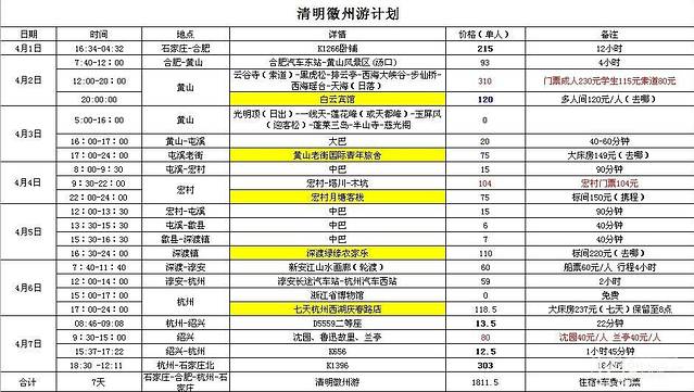 基本预算衣食住行都包括2500元/人,基本实现。上图——去之前的【计划表】(前五天基本按计划,后两天因为交通问题略有改动,此预算不包括吃饭。)