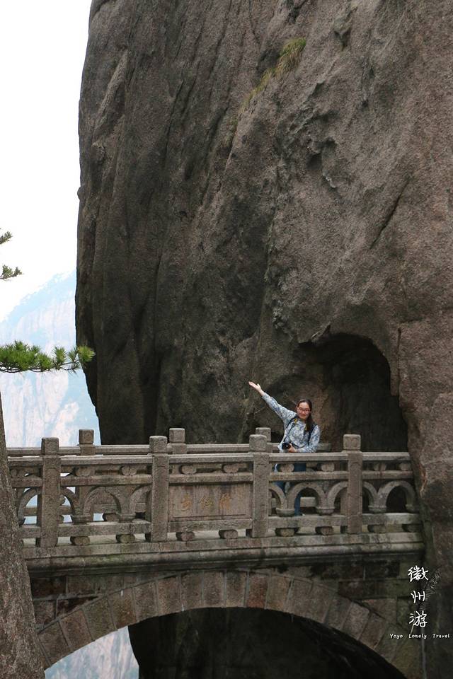 【鳌鱼峰】的确很平坦,一会就到顶了。再往前穿过【鳌鱼洞】到达【百步云梯】(鳌鱼洞和【一线天】二选一,都可以到达百步云梯,我们没有找到一线天的路……)百步云梯实在陡没有拍照,我是四脚并用爬上去的,没敢回头。百步云梯198阶,越往上越陡,虽然比不上天都峰惊险,但已经够我受的了。