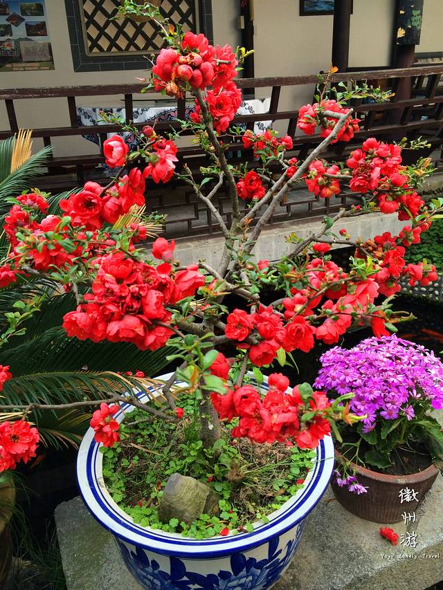 我们先到了之前定下的【月塘客栈】,小院子环境不错,花开正好。