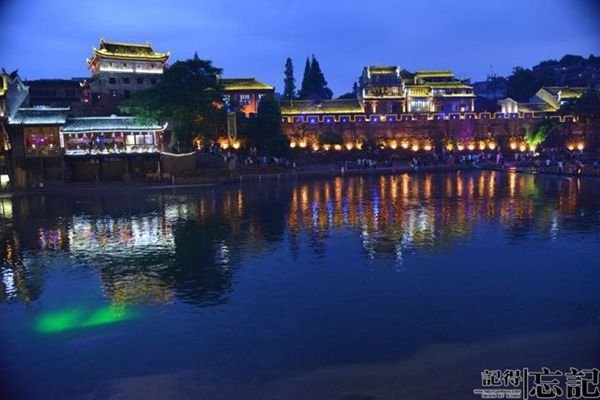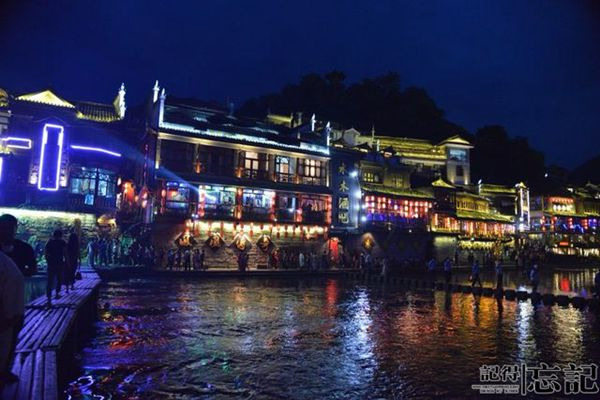 夜幕下的凤凰,霓虹初上,各色灯光交映在建筑上,倒影在水中,焕发出一种妖娆的魅力,这种魅力是白天所不能想象的,犹如一位清纯少女,精心装扮后去赴酒吧约会,和平日的清纯截然不同,在众人面前展示出来的是那独特的明艳动人!