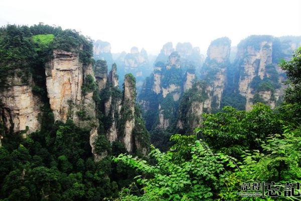 按计划早上8:00 出发,早上7点半陈导出现在酒店大堂,为了整个行程轻松些,整理好行李包拖运到景区的住宿地(兰子和另外两位朋友还担心托运行李不安全,事实证明,这种顾虑是多余的,当我们下午到达住宿的地方我们的行李已经在那啦),吃早餐后就直接到景区。从市区至森林公园,一路田园风光,大概40分钟的路程。张家界,一个让你眼睛上天堂,身体下地狱的地方。你很难用镜头记录它的美,它的震撼。当你乘缆车抵达山顶的时候,俯视群山是何等的壮观。 当你穿梭在金鞭溪仰望群山的时候,你又感叹自己是何等的渺小。