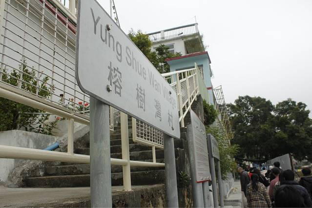 坐到沙田站出来,往全是山的那边走,不是商场和房子那边,走过铁路的桥,就到了这个小村子了
