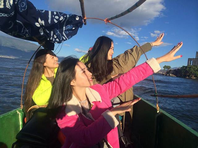 待太阳完全从山后冒出来以后,阳光有些刺眼,投射到洱海里,波光灵动,这时摄入眼中的是美景,摄入心中的是惬意。