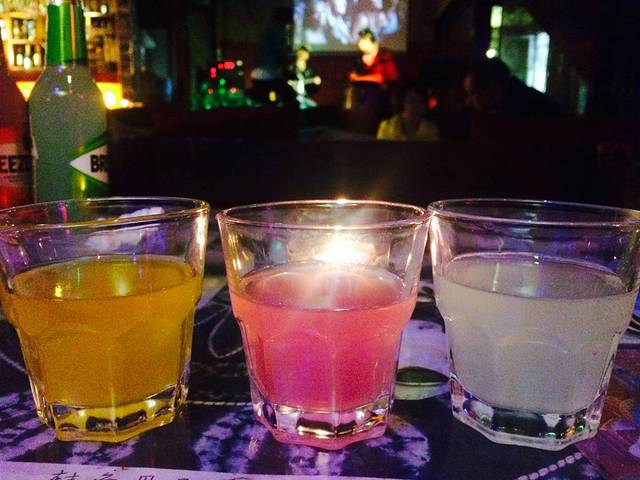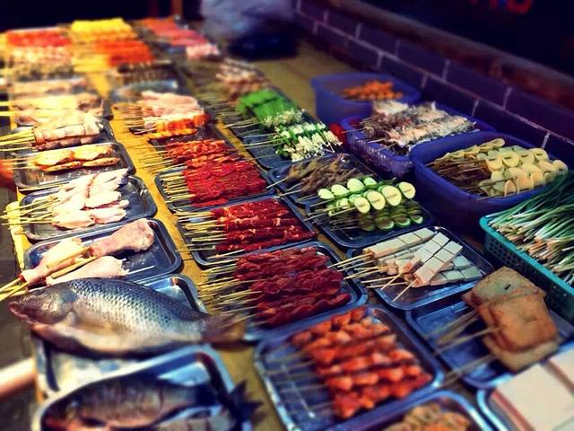 逛街逛到晚上,肚子也饿了,烧烤走起。听说客栈老板有红酒,我们就决定打包回客栈小酌一杯。