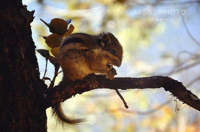 路边吃东西的小松鼠,为了拍它,游客们可是喂食了不少松子。公交车上的解说说过,为了让它们不丧失捕食的能力,最好是不要喂食食物。如果养成了习惯,在淡季或者寒冬来临的时候,它们会饿死在山上。