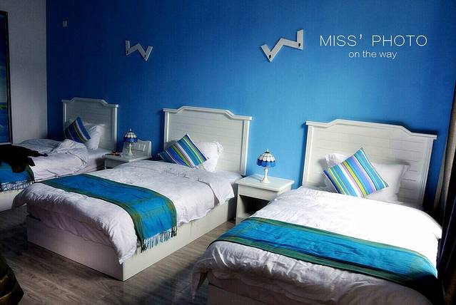 每个房间的颜色都不一样哦。这样蓝色的三人间,仅此一间。