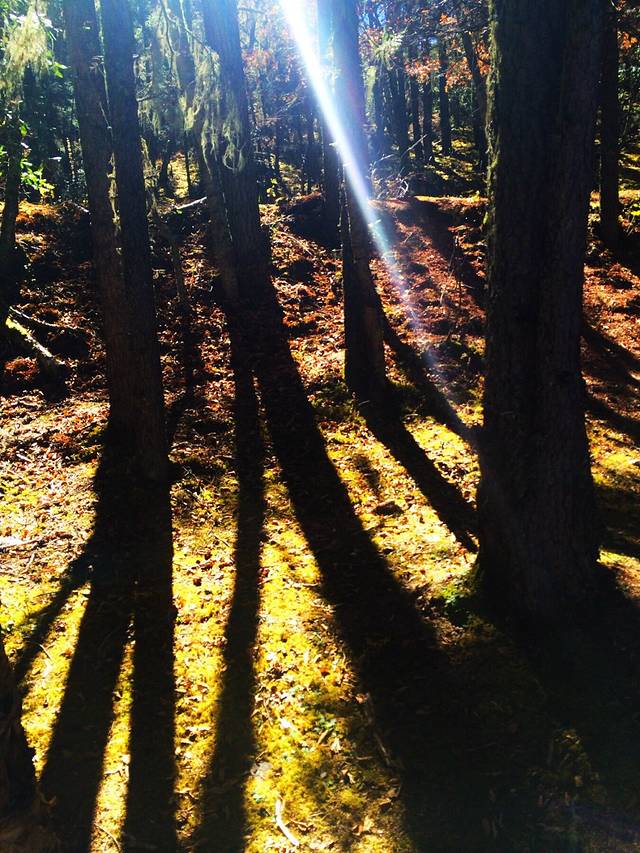 神秘的大森林,时不时露出点阳光来。断断续续的温暖着穿梭在占道里的游客......