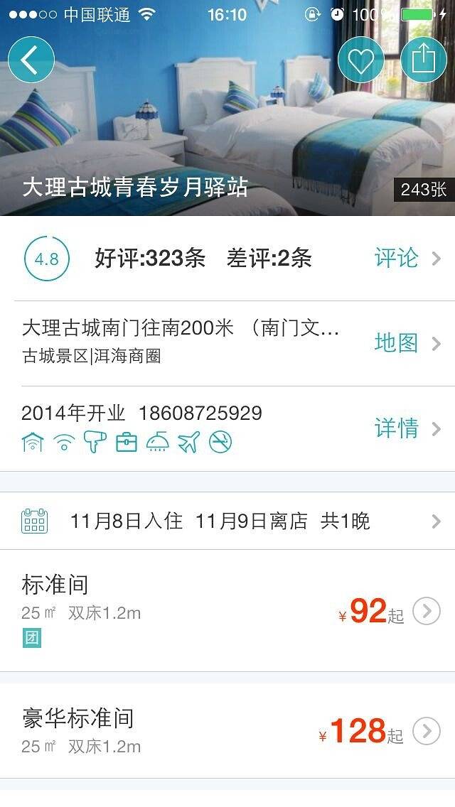 在这家客栈,我们入住的是落地窗三人间,房间非常干净,没有异味。离大理古城的南门很近,步行5分钟。