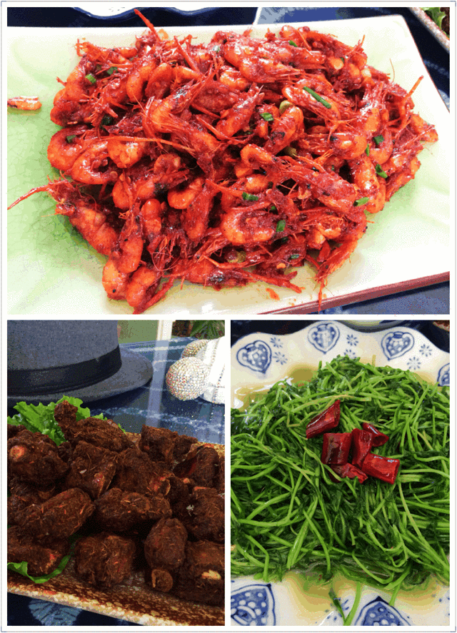 大理的菜馆门口都是看菜点菜的,青菜品种很多,野菜贵一点以外,其他都还比较合理。我们三个都是重口味,所以这餐吃得很舒服~