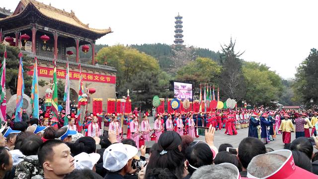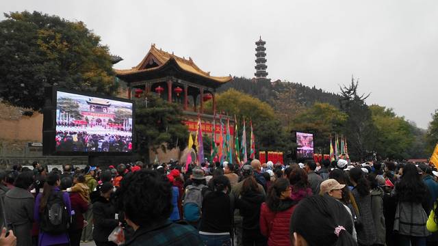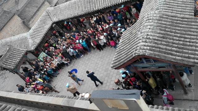 刚下车就看到等候在相城府门口观看迎宾仪式的人,每天9点半准时演出,演出的情节是陈廷敬受皇恩浩荡的佳话,细节方面的由于人太多没有挤到最前面,所以只能踮起脚尖给大家拍个照,出城仪式结束后,由于同时又几十个旅游团,人都是挤着才能进去,站在人群众只能看到人,秩序严重混乱,好歹也是5A级的景区,容纳量真的有点不够用。