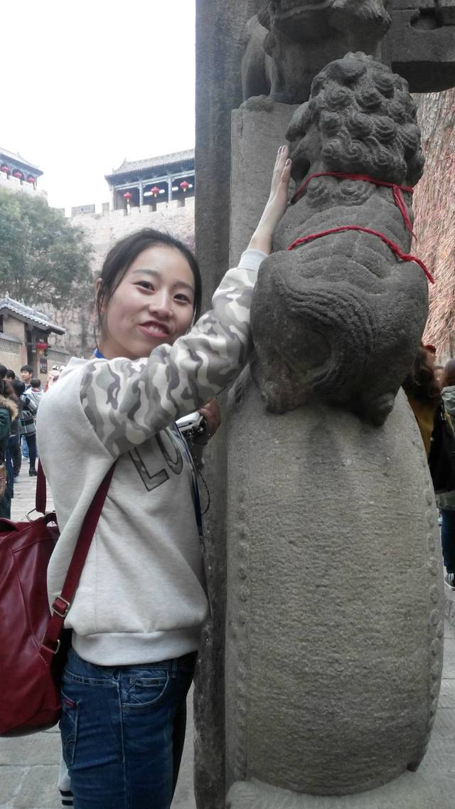 终于挤到最前面了,,这门前总共有18只狮子,象征陈廷敬当了18年的宰相,当地人有个俗语,摸摸狮子头,xxx中间记不清了,只记住了最后一句,从头摸到脚荣华又富贵,这不我们美美从头摸到尾,并且摸了好几遍,,嘻嘻。。。