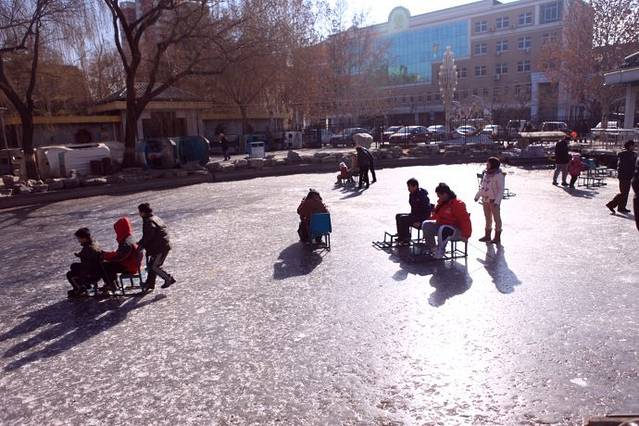 北京的冬天是可爱的,没有像东北的寒风凛冽,还可以不时出门享受被微寒的北风吹得清爽的感觉,北京的冬天房间里是无比温暖的,前一分钟屋外是冰冻三尺,下一分钟屋内就可以尝试夏日的精简,绝对好过于南方屋内屋外羽绒服的冬天,北京的冬天可以做的户外活动其实很多,可以到郊区滑雪,享受从雪道上驰骋而下的爽快感觉,可以继续游走分布在城区各个方向的大小公园,冬天的河水成冰,树枝挂霜,别有韵味。如果你不想路途遥远,最简单最随处可以参与的活动便是“滑冰”,无论你住在北京哪个地方,你的身边一定有或大或小的公园,公园的湖水在冬天结冰,都会开辟出一块地方供大家滑冰,这里有专人管理,收费提供滑冰工具,非常适合大人孩子共享天伦之乐,既锻炼了身体,又收获了快乐。
