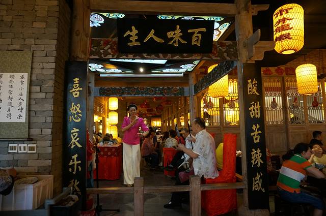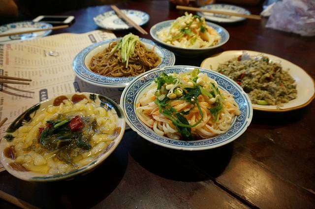这是晚上快八点时候的天空,才刚刚要开始黑~图片上那个很复杂的字也是西安的一大特色,念“miang”,有一种面就叫这个名字。回民街不愧是西安最有名的美食节,一条路走下去,各种美食,看到每一个都有流口水的冲动,原谅我忙于吃,没有拍照。第一家去的是贾三灌汤包子铺,先把包子皮咬一个洞,把汁吸出来,再吃包子,味道超赞,再配一杯街头巷尾都有的酸梅汤,爽口!回民街一条直路走到头,左转往前走,大概五十米左右,有个小巷子拐进去,有一家烧烤店,烤的牛板筋很好吃,筋道入味。出了巷子继续往前走有家定家小酥肉和最有名的麻酱凉皮店盛志望麻酱酿皮铺,这两家都是回民街的经典。