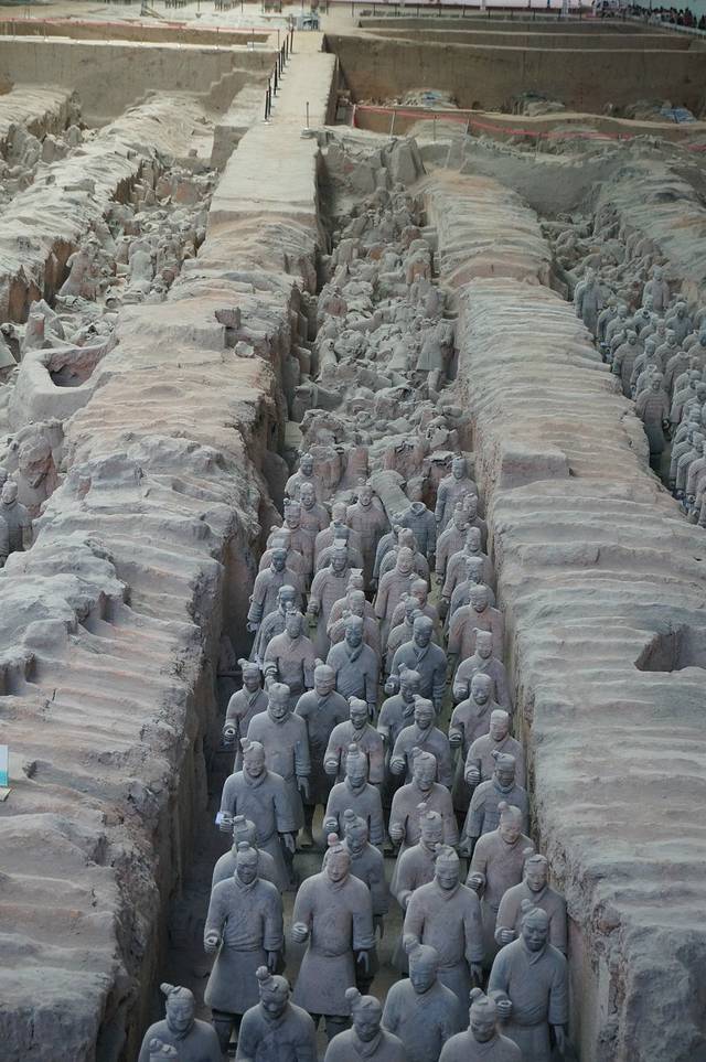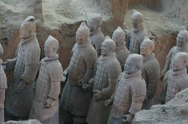 发髻、面部表情、服饰、手势。。从上到下,各不相同,没有完全一样的兵马俑。