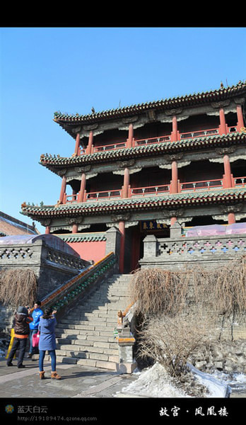 一路前行,来到了连接外朝和内院的凤凰楼,爬上去就是皇太极的后宫。这座歇山琉璃瓦顶的三层楼阁,高20多米,又建在4米高的高台上,是当时沈阳最高的建筑物之一,被称为盛京八景之一的“凤楼晓日”。